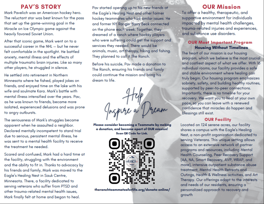 Please join us and the following invited special guests as we enjoy a night reliving the Miracle on Ice and joining those who want to fight to address mental health issues: